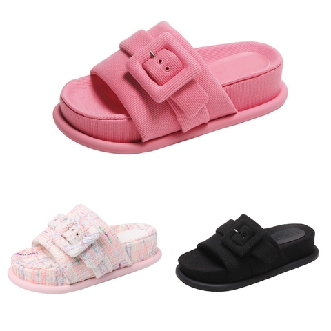 Ciabatte Piatte da Donna alla Moda con Fibbia, Sandali Casual da Spiaggia, Sandales Plates