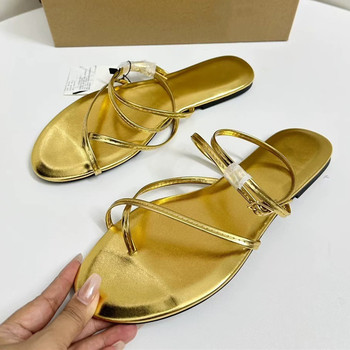 골드 메탈릭 룩 PU 가죽 토 링 여성용 플랫 샌들 플립 플롭 슬리퍼 비치 바캉스 Pantoufles Pour Femmes